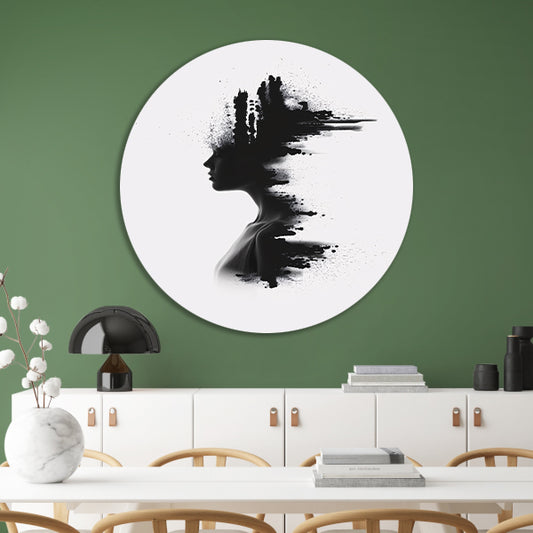 Zwart-wit silhouet met inktvlekken forex muurcirkel