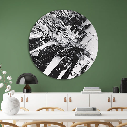 Dynamisch abstract zwart-wit ontwerp met scherpe lijnen forex muurcirkel