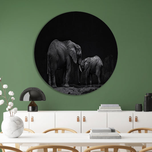 Zwart-wit olifanten moeder en kalf kunst forex muurcirkel