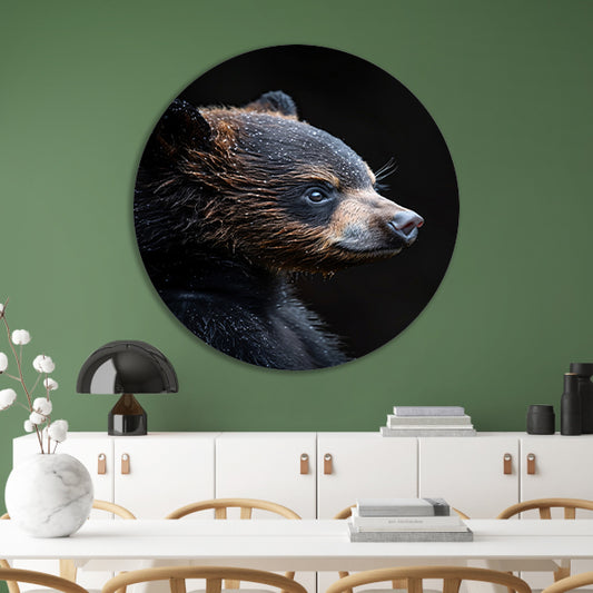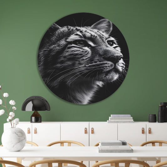 Zwart-wit foto van een jonge welp aluminium muurcirkel