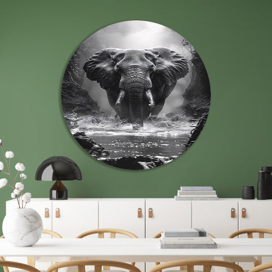 Majestueus olifant portret in zwart-wit forex muurcirkel