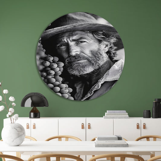 Portret van een wijngaardenier met druiven aluminium muurcirkel