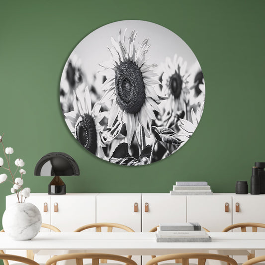 Elegante zwart-wit zonnebloemen, natuur in monochroom aluminium muurcirkel