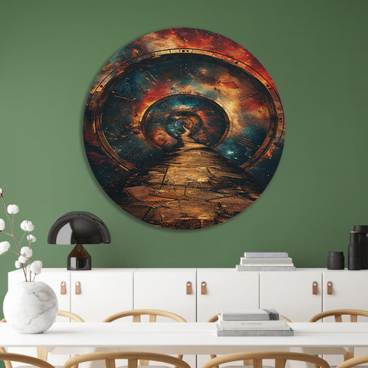 Surrealistisch Pad door de Kosmische Tijd aluminium muurcirkel