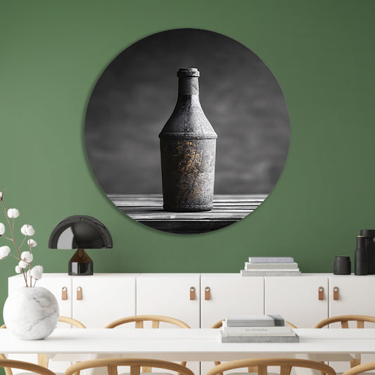 Verweerde fles in zwart-wit aluminium muurcirkel