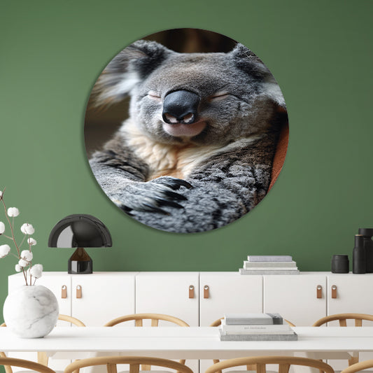 Zwart-witfoto van een slapende kat aluminium muurcirkel