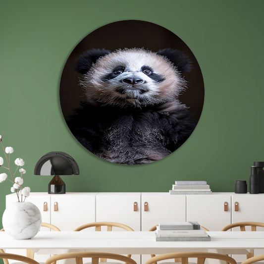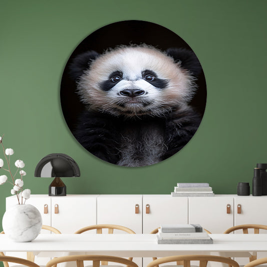 Portret van een Jonge Panda in Zwart-Wit aluminium muurcirkel