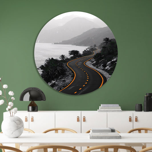 Monochrome kustlijn met rotsformaties aluminium muurcirkel