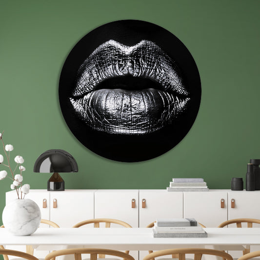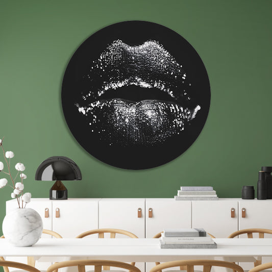 Close-up van glinsterende lippen in zwart en wit forex muurcirkel