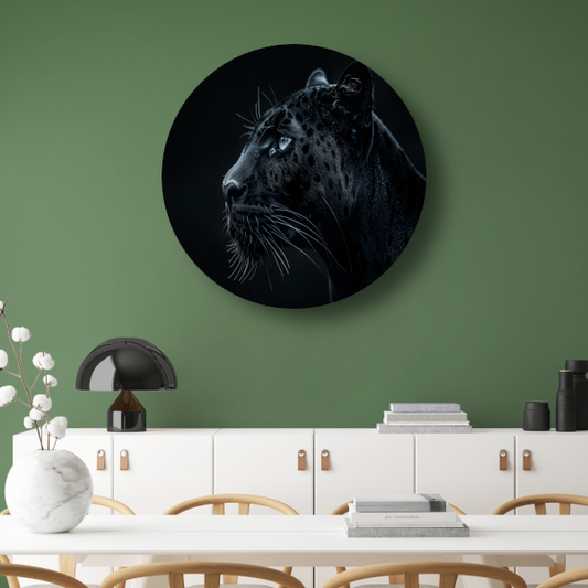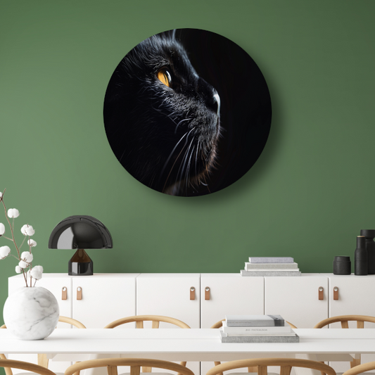 Zwarte Kat met Doordringende Gele Ogen forex muurcirkel