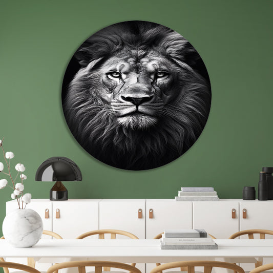 Zwart-witte Leeuw in Close-up aluminium muurcirkel