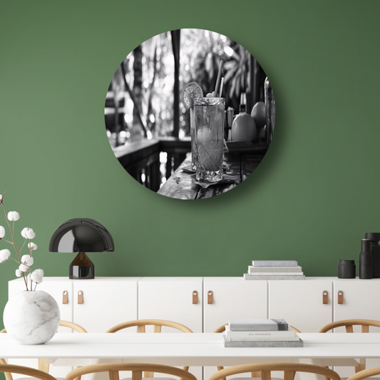 Elegante Zwart-Wit Cocktailbar Momentopname aluminium muurcirkel