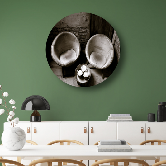 Minimalistische Buitenplaats met Stoelen aluminium muurcirkel