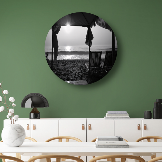 Zwart-wit Strandgezicht aluminium muurcirkel