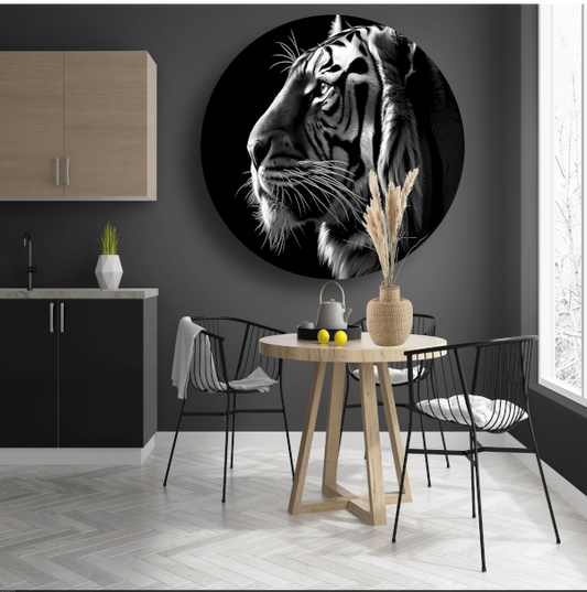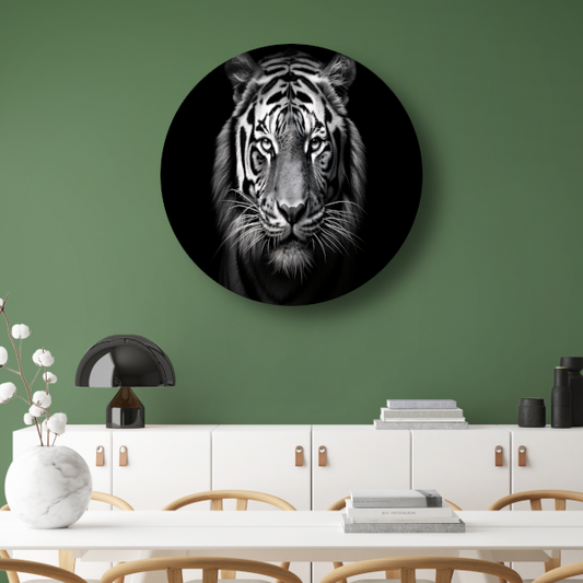 Zwart-witte tijgerportret, epressief forex muurcirkel