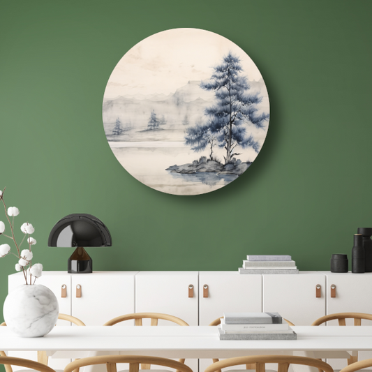 Gestileerde Boom met Perspectief en Blauwe Bladeren forex muurcirkel