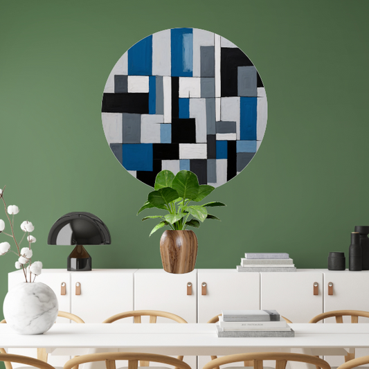 Monochrome Harmonie in Blauw en Zwart forex muurcirkel