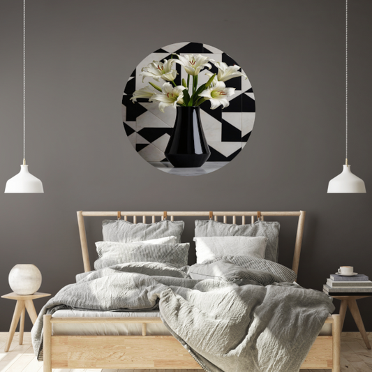 Stijlvolle Lelies in Zwart-witte Geometrische Setting forex muurcirkel