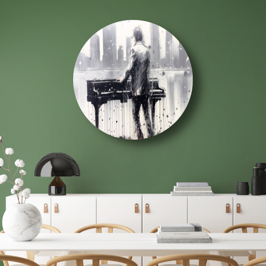 Pianist tegen de achtergrond van een wazige stad forex muurcirkel
