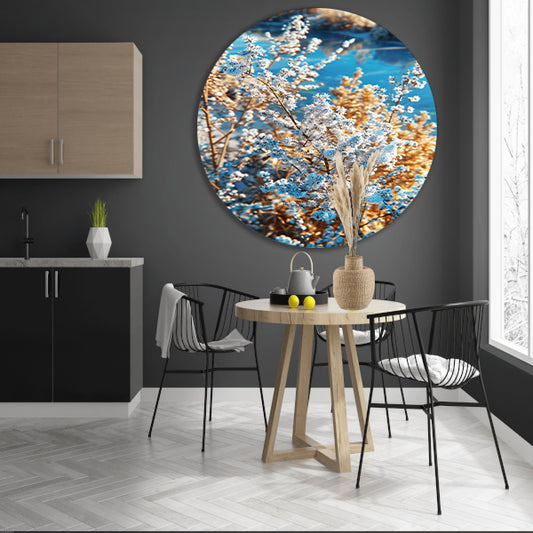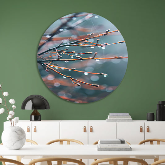 Glinsterende dauwdruppels op takken aluminium muurcirkel