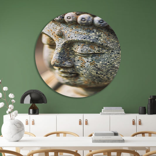 Close-up van een stenen Boeddha aluminium muurcirkel