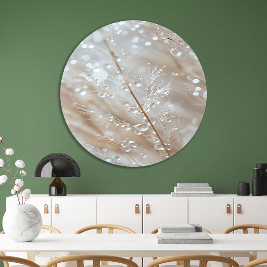 Glinsterende dauwdruppels op grashalmen aluminium muurcirkel