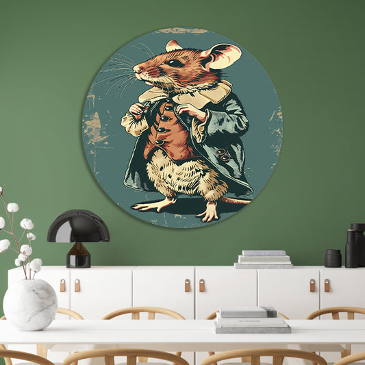 Vintage illustratie van een muis in een pak aluminium muurcirkel