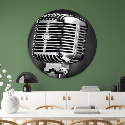 Close-up vintage microfoon in zwart-wit aluminium muurcirkel