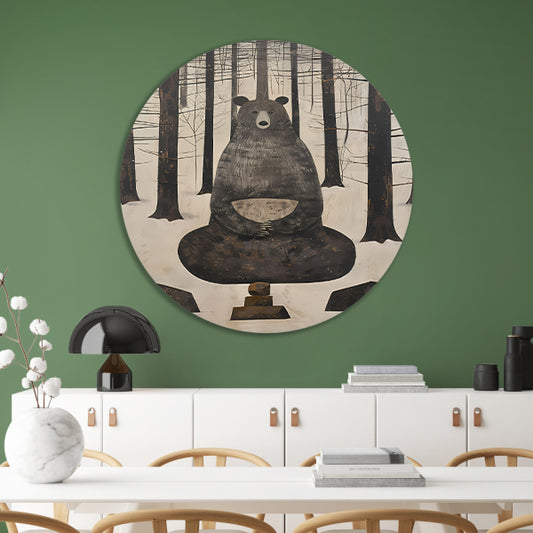 Mediterende Beer in Winterbos aluminium muurcirkel