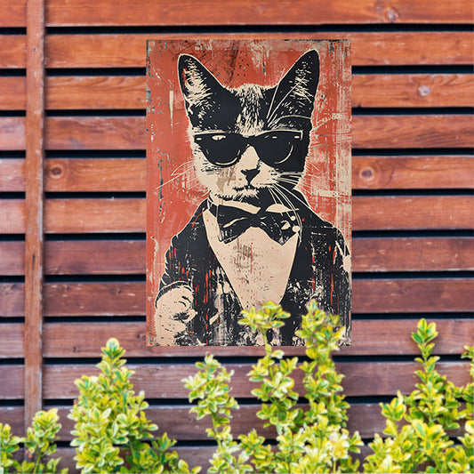 Zwart-witte kat met zonnebril en vlinderdas tuinposter