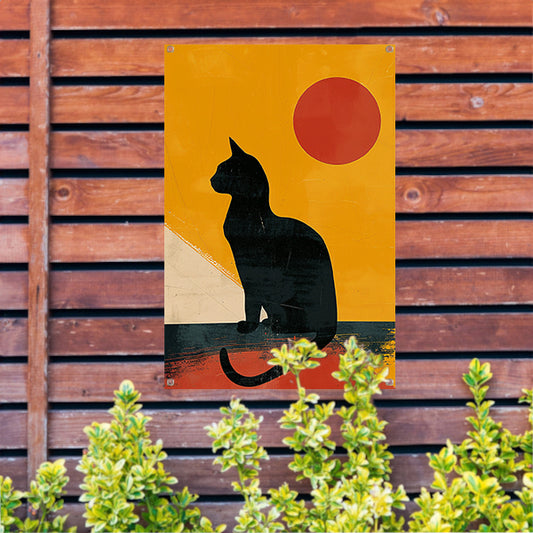 Zwarte Kat in Abstract Zonsondergang tuinposter