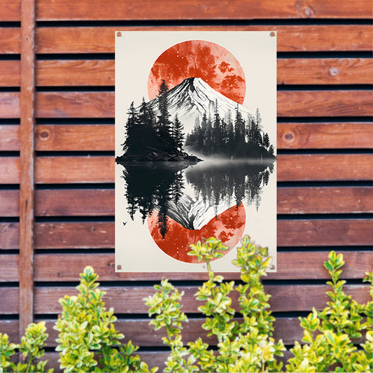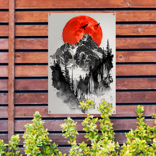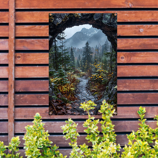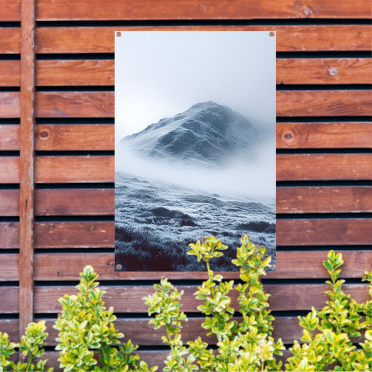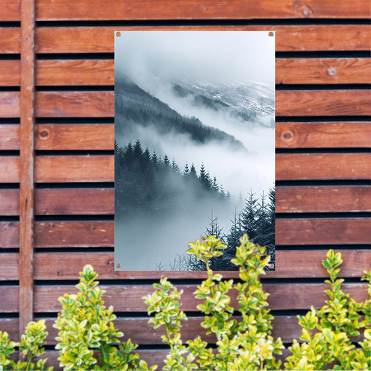 Mystieke Bergtop in Monochrome Mist tuinposter