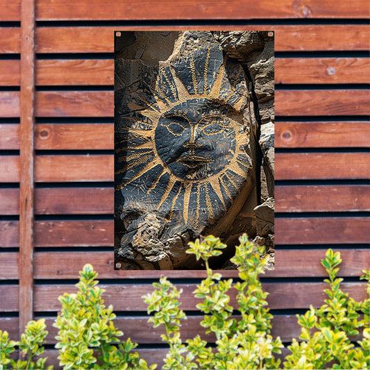 Abstract zonnegelaat met symbolen tuinposter