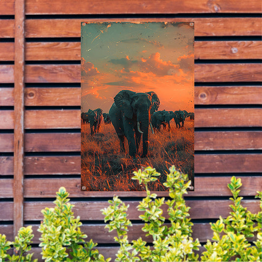 Olifantenkudde traverseert savanne tuinposter