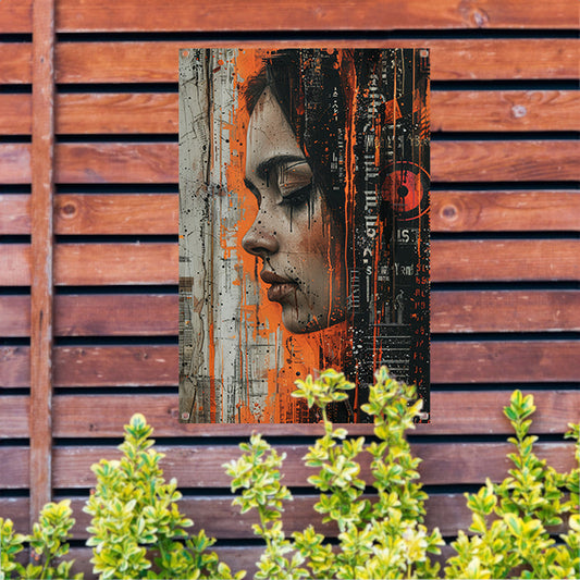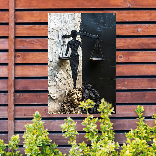 Abstract Justitia tussen Vervallen Muren tuinposter