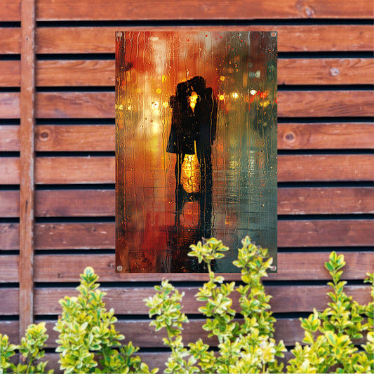 Gepassioneerde Omhelzing in de Regenachtige Nacht tuinposter