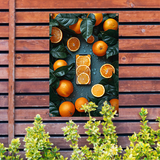 Minimalistisch stilleven met fruit en telefoon tuinposter