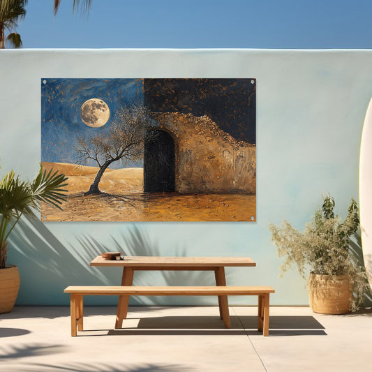 Slaapkamer met maanlicht tuinposter