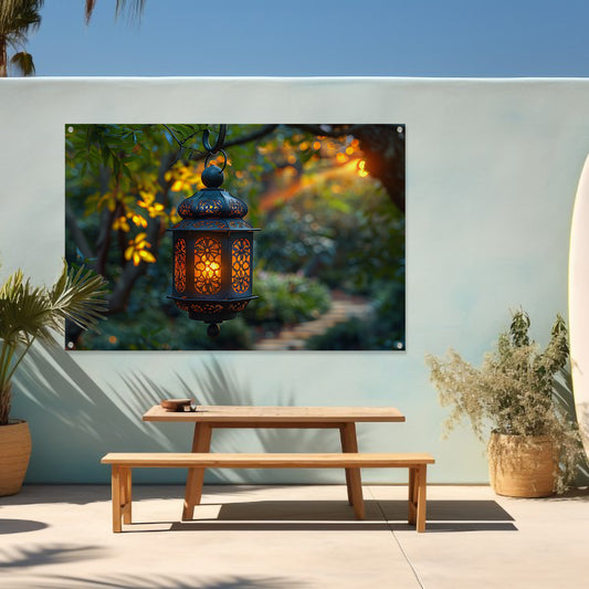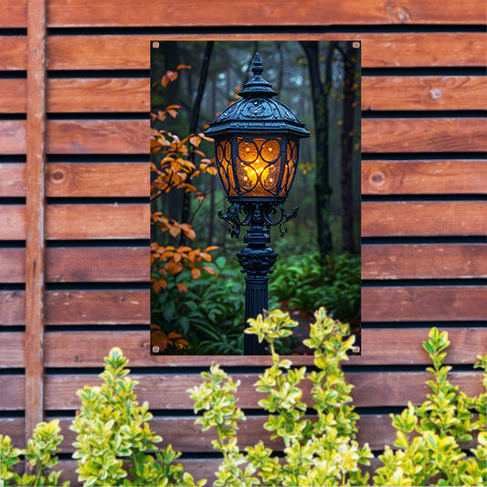 Boslantaarn in schemering tuinposter
