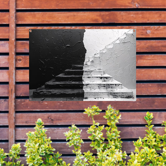 Zwart wit trappenhuis tuinposter