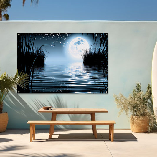 Volle Maan Reflecteert in Water tuinposter