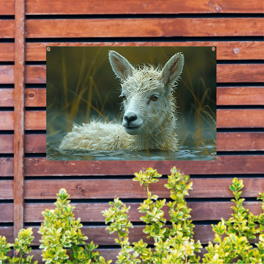 Schaap dobbert vredig in meer tuinposter