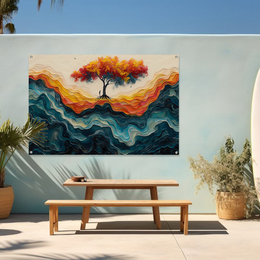 Lenteboom bij zonsondergang tuinposter