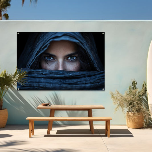 Mysterieuze Vrouw in Textielomhulsel tuinposter