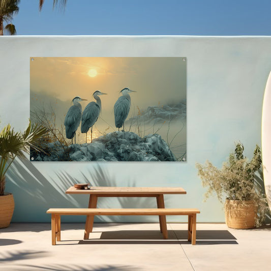 Reigers bij zonsondergang tuinposter