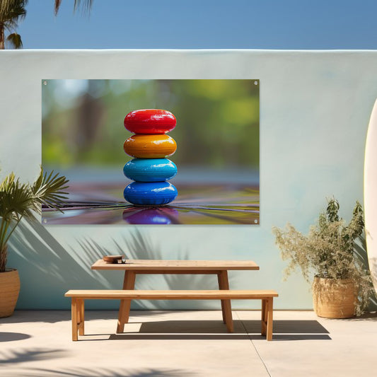 Abstract stenenstapel tuinposter