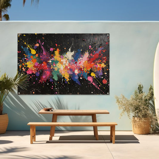Abstract Verfexplosie op Zwart tuinposter