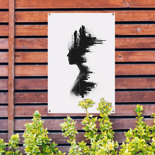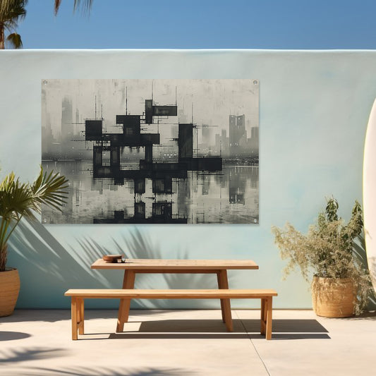 Dynamisch abstract zwart-wit ontwerp met scherpe lijnen tuinposter
