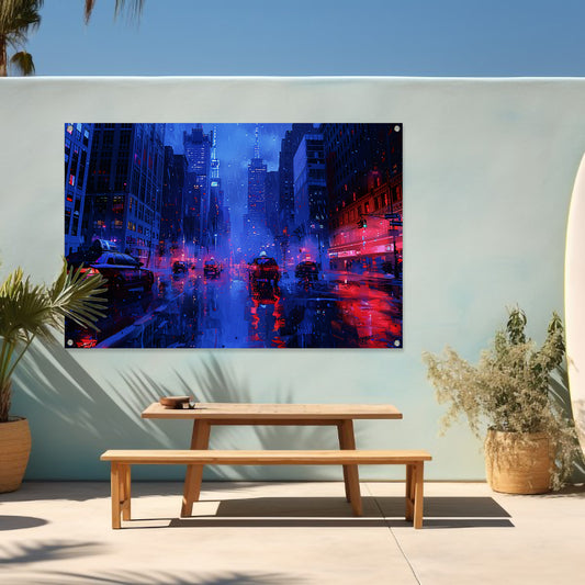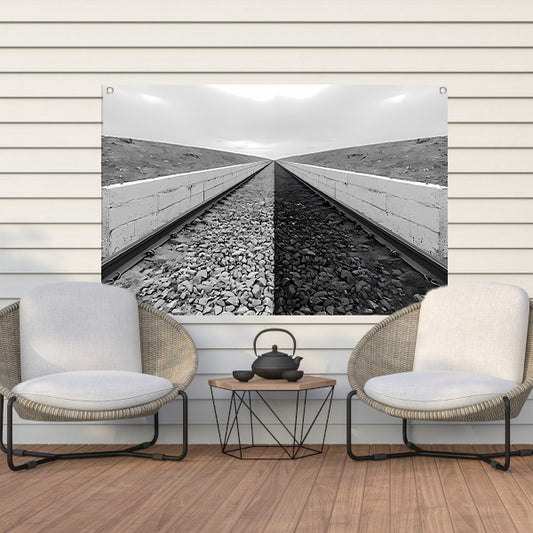 Eindeloze sporen tussen ommuurde grenzen tuinposter