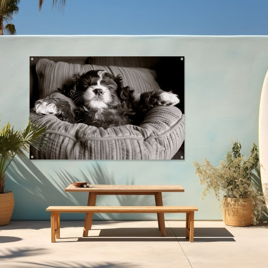 Slapende viervoeter: Slapende viervoeter in comfortabel bed. tuinposter